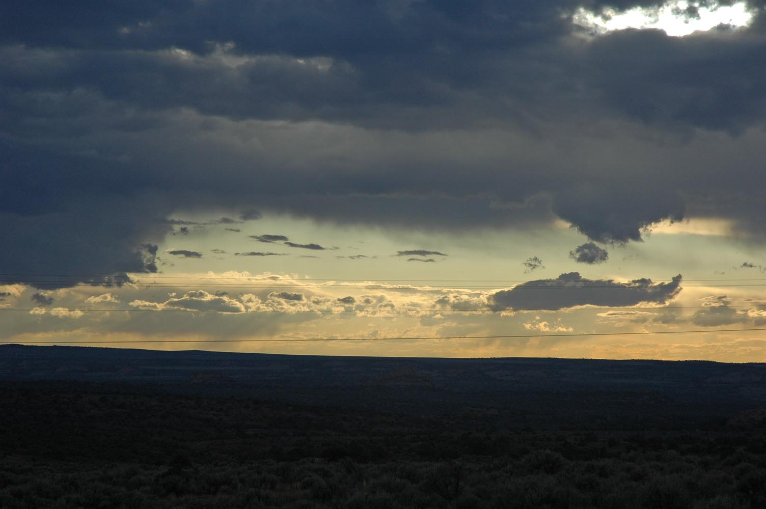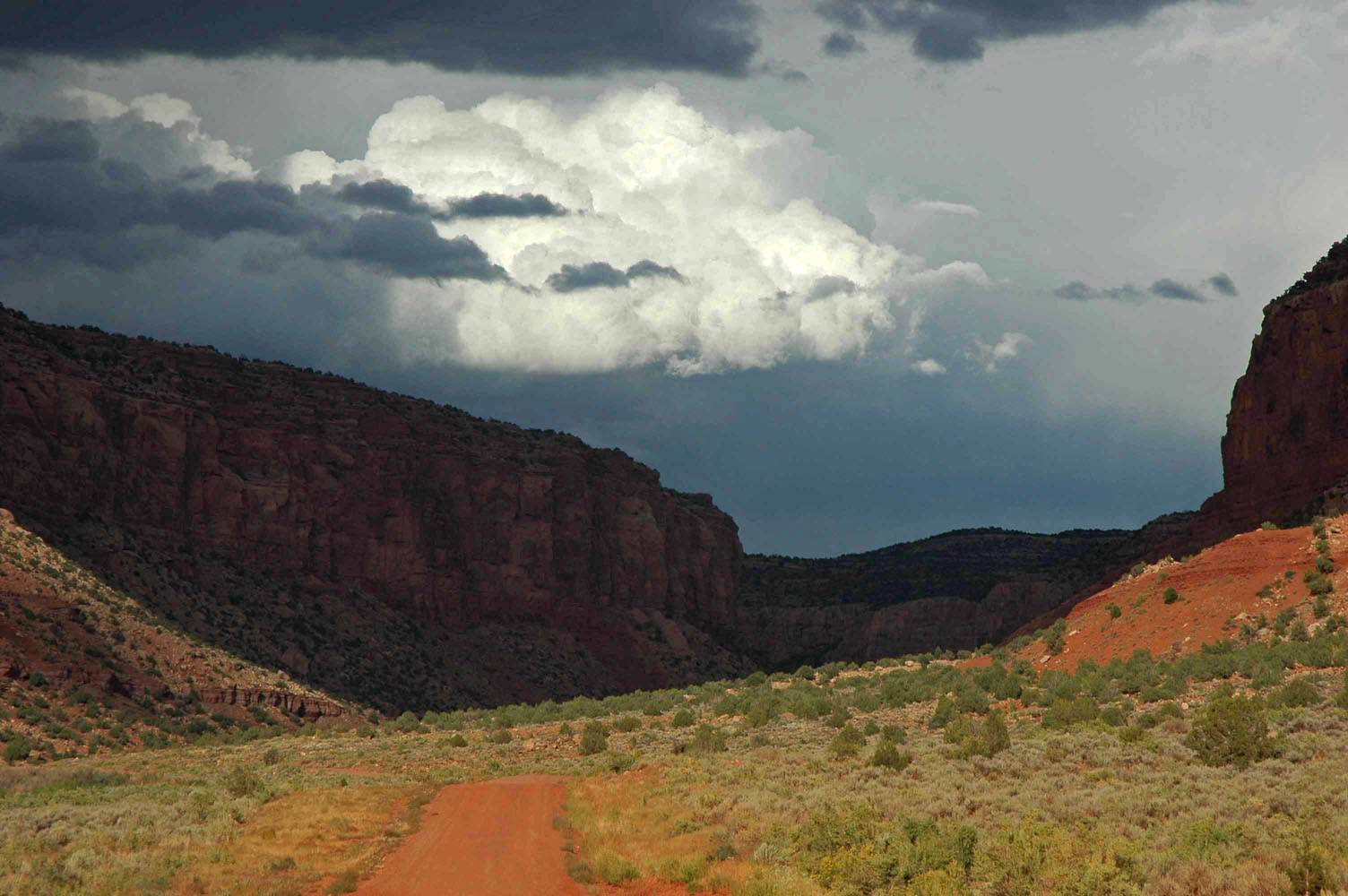 Gebiet nach Utah und trifft dort auf die recht vielbefahrene US-191. Massige Gewitterwolken