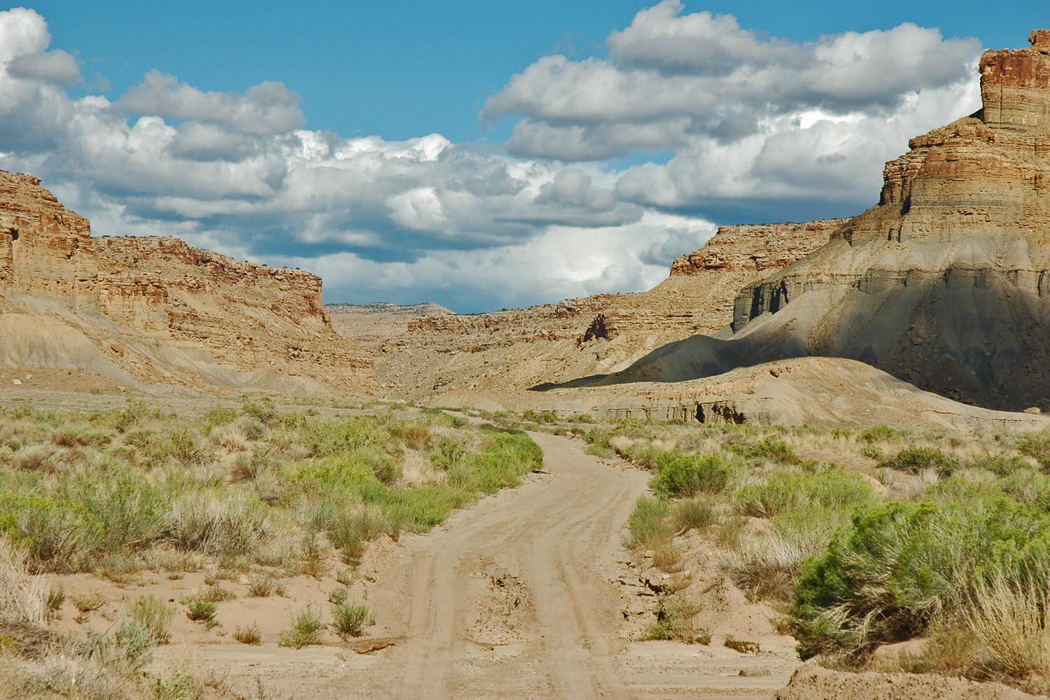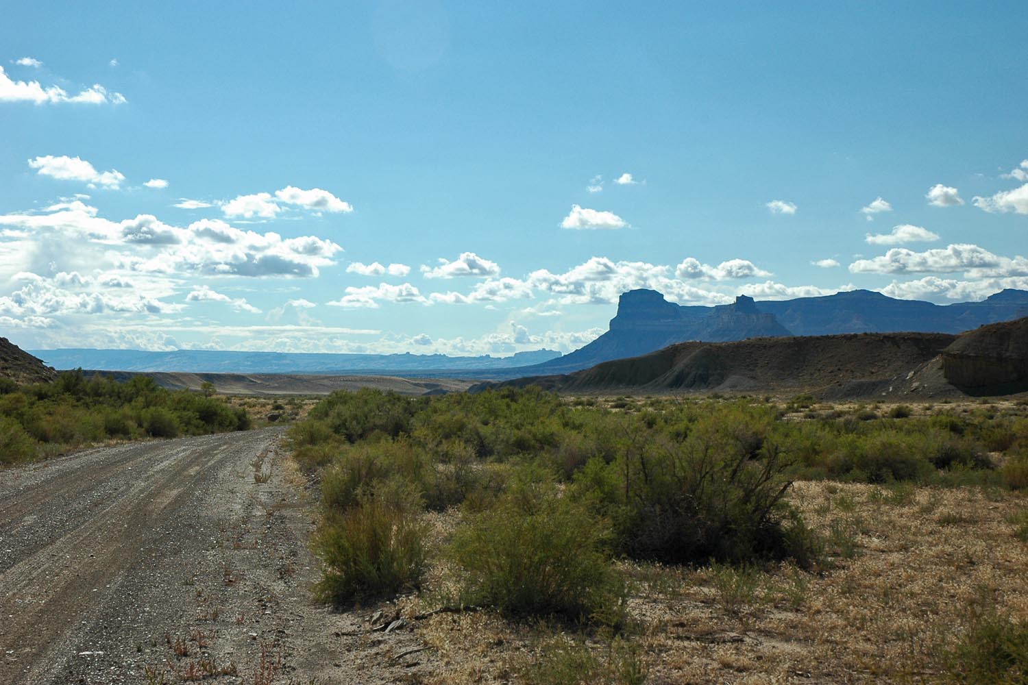 ein Fährtchen in die westlich gelegene San Rafael Swell hinein. Den Karrenweg zm