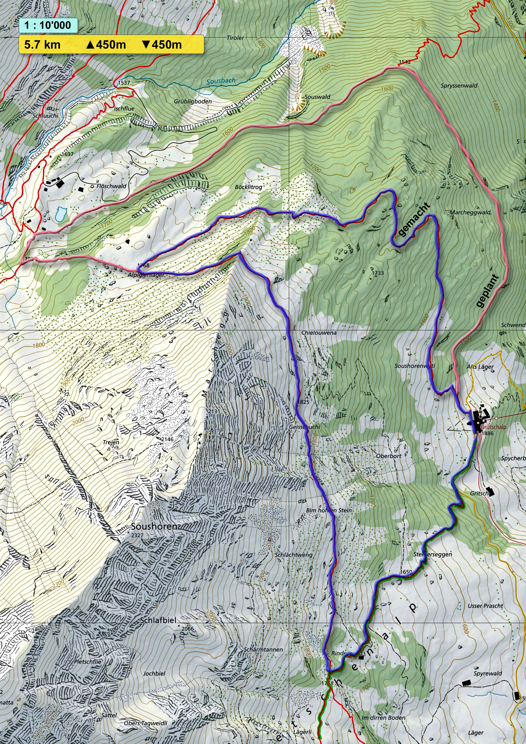 Dabei trinke ich beim Wandern doch immer gerne Bouillon und warmen Tee. Ich beschloss dann missmutig, auf kürzestem Weg zur Grütschalp zurückzulaufen.