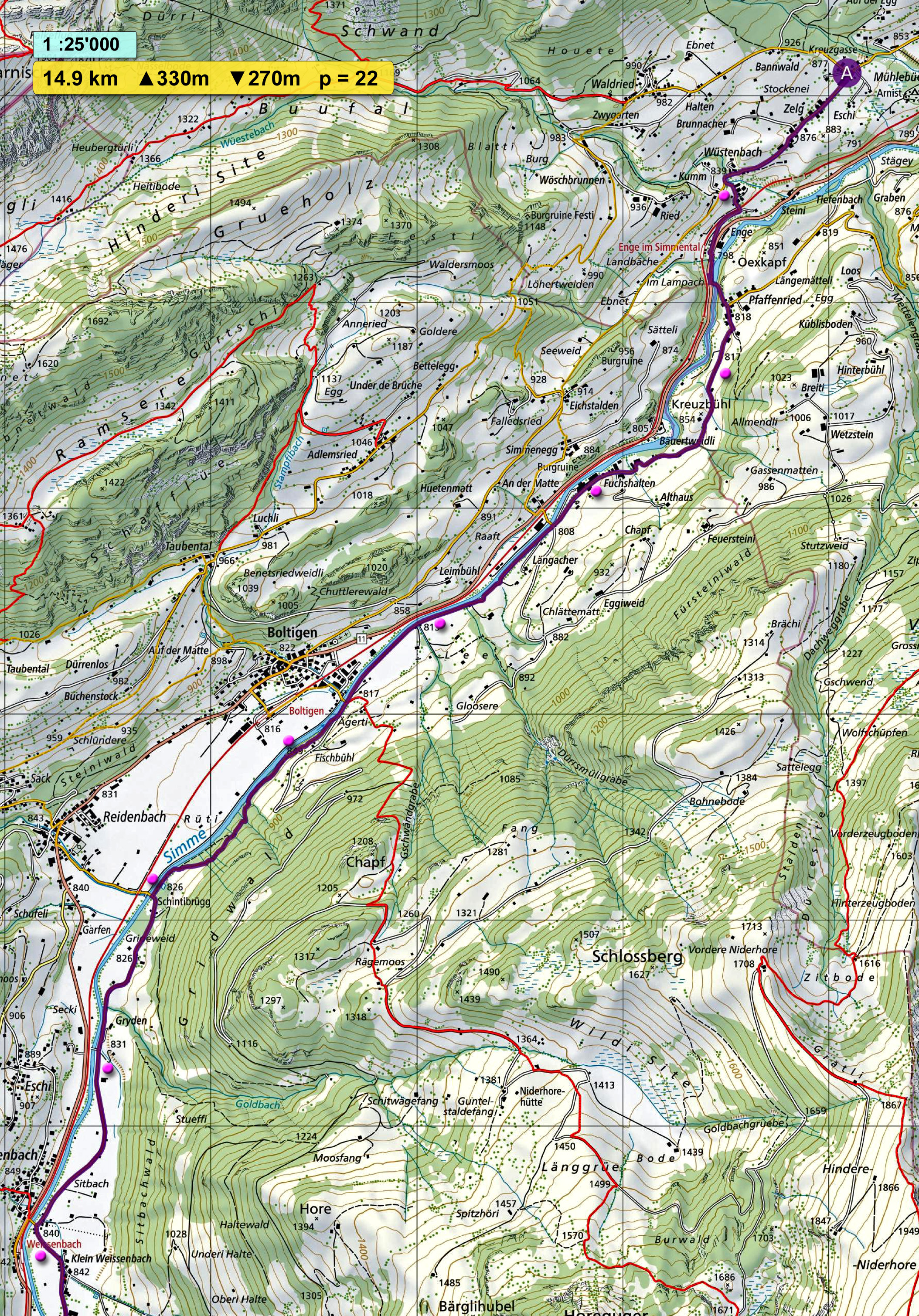 Oberwil - Zweisimmen (kurze Route)