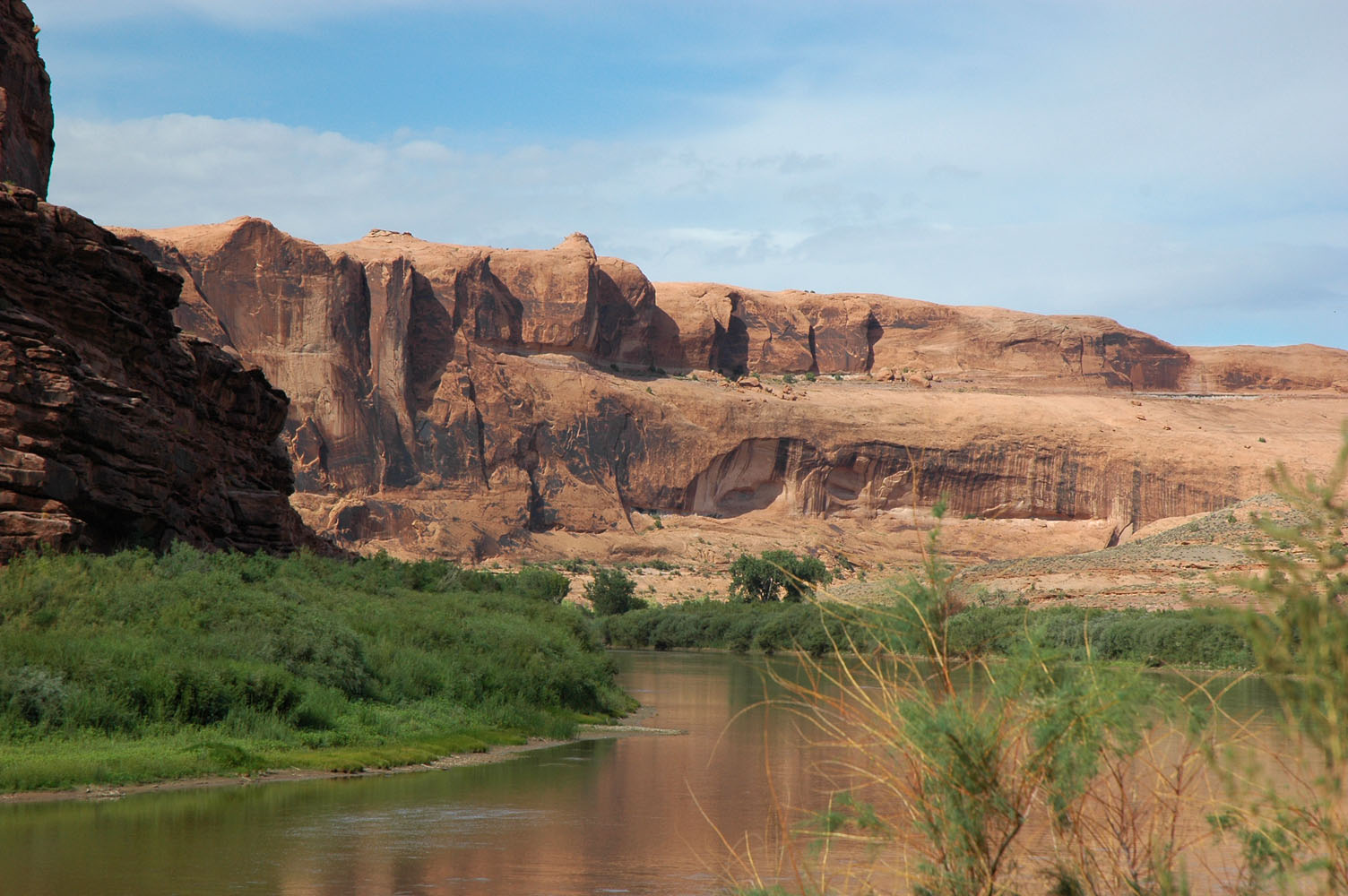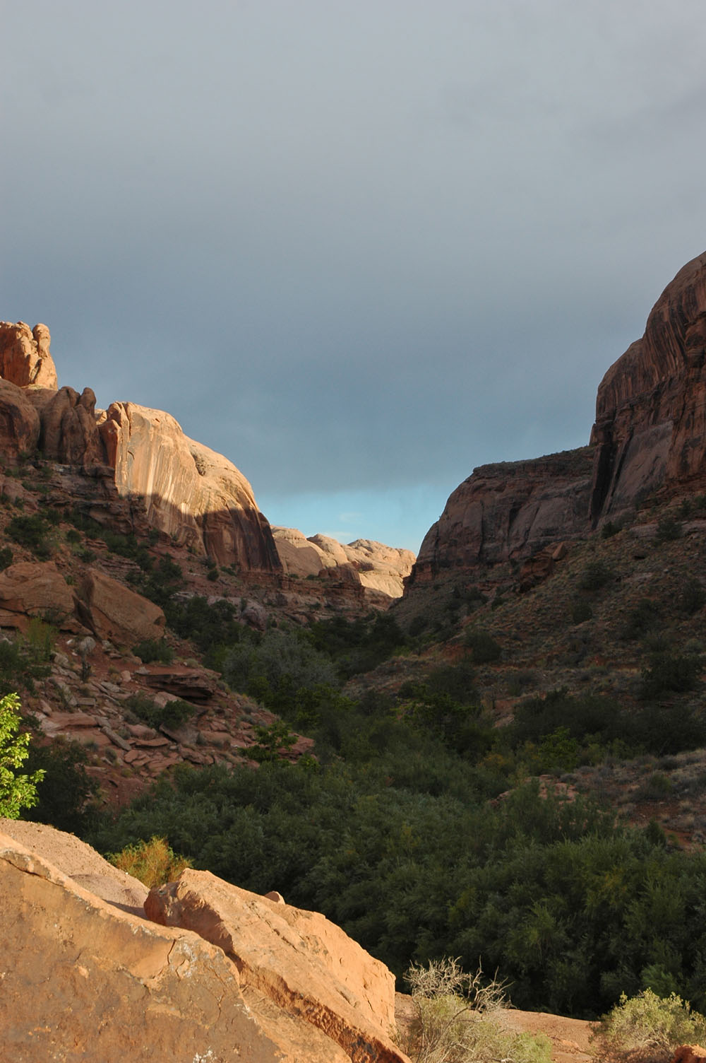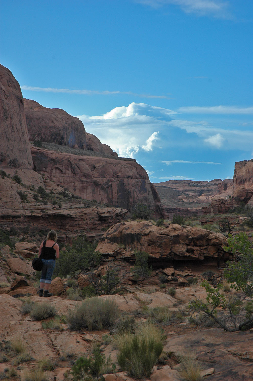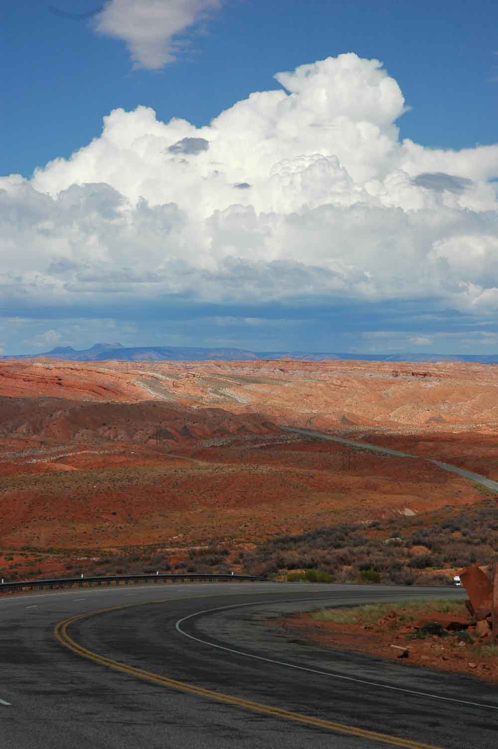 Fahrt durch den Dolores River Canyon nach Bedrock. Dann weiter bis Moab, wo es am Abend gewaltige Gewitter gibt.
