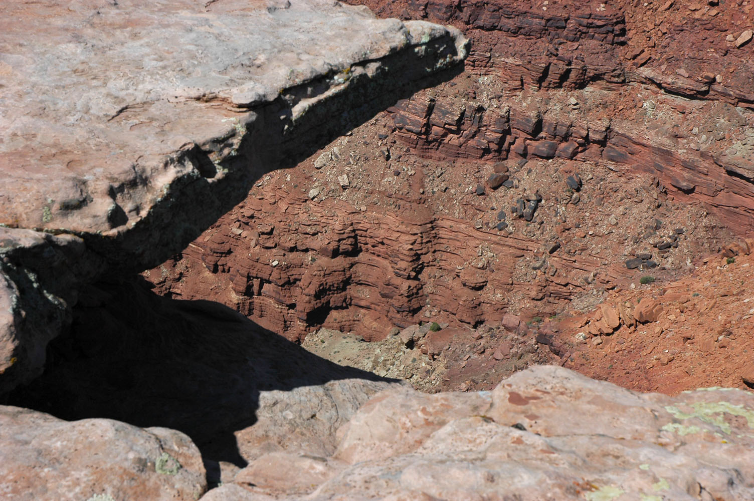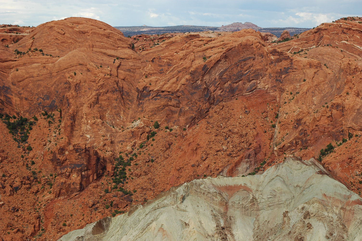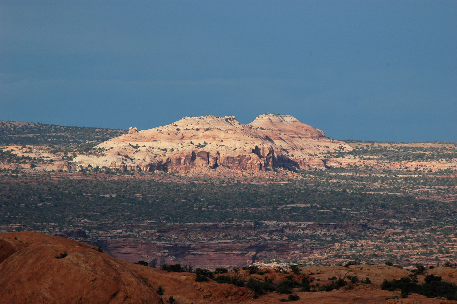 Nach dem Lunch auf dem Zeltplatz Fahrt zu "Island-in-the-Sky" und weiter zum Upheaval Dome. Wanderung zum View Point und noch weiter.