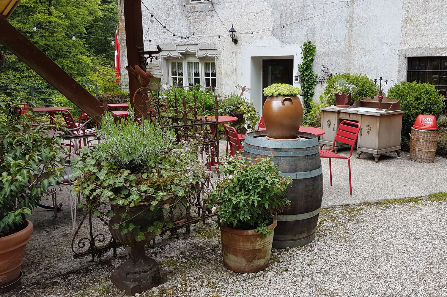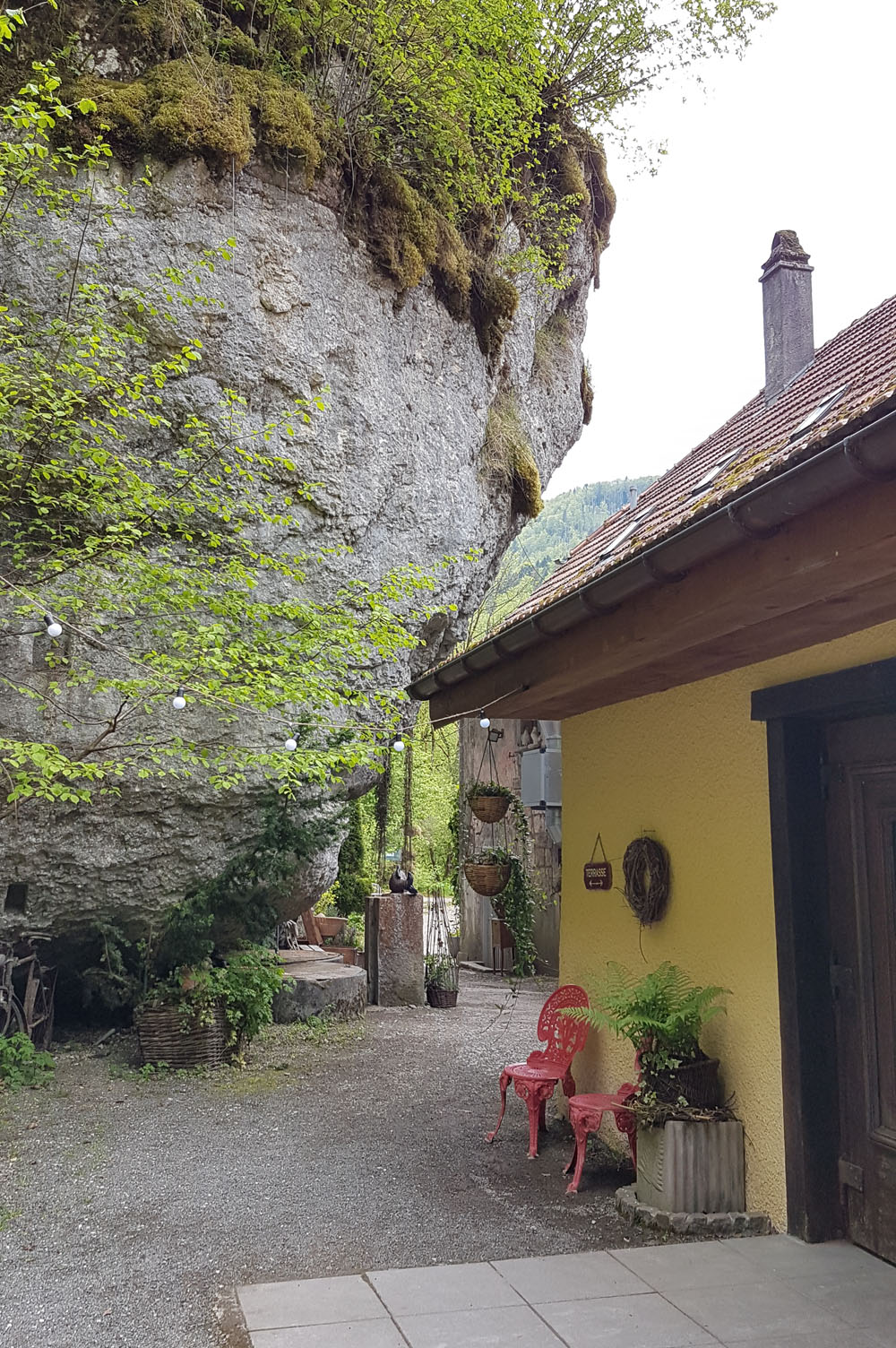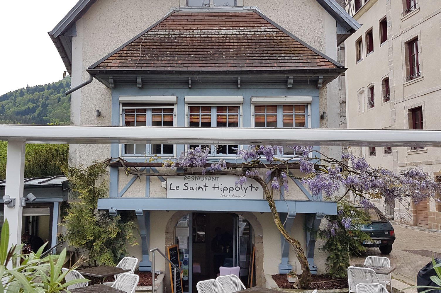 Le Theusseret: Romantische Beiz plus Hotel direkt am Doubs. Wegen einer hohen Schwelle rauscht der Fluss rauscht Tag und Nacht. Manche lieben das, andere nicht. ICH LIEBE DIESES STETE RAUSCHEN!