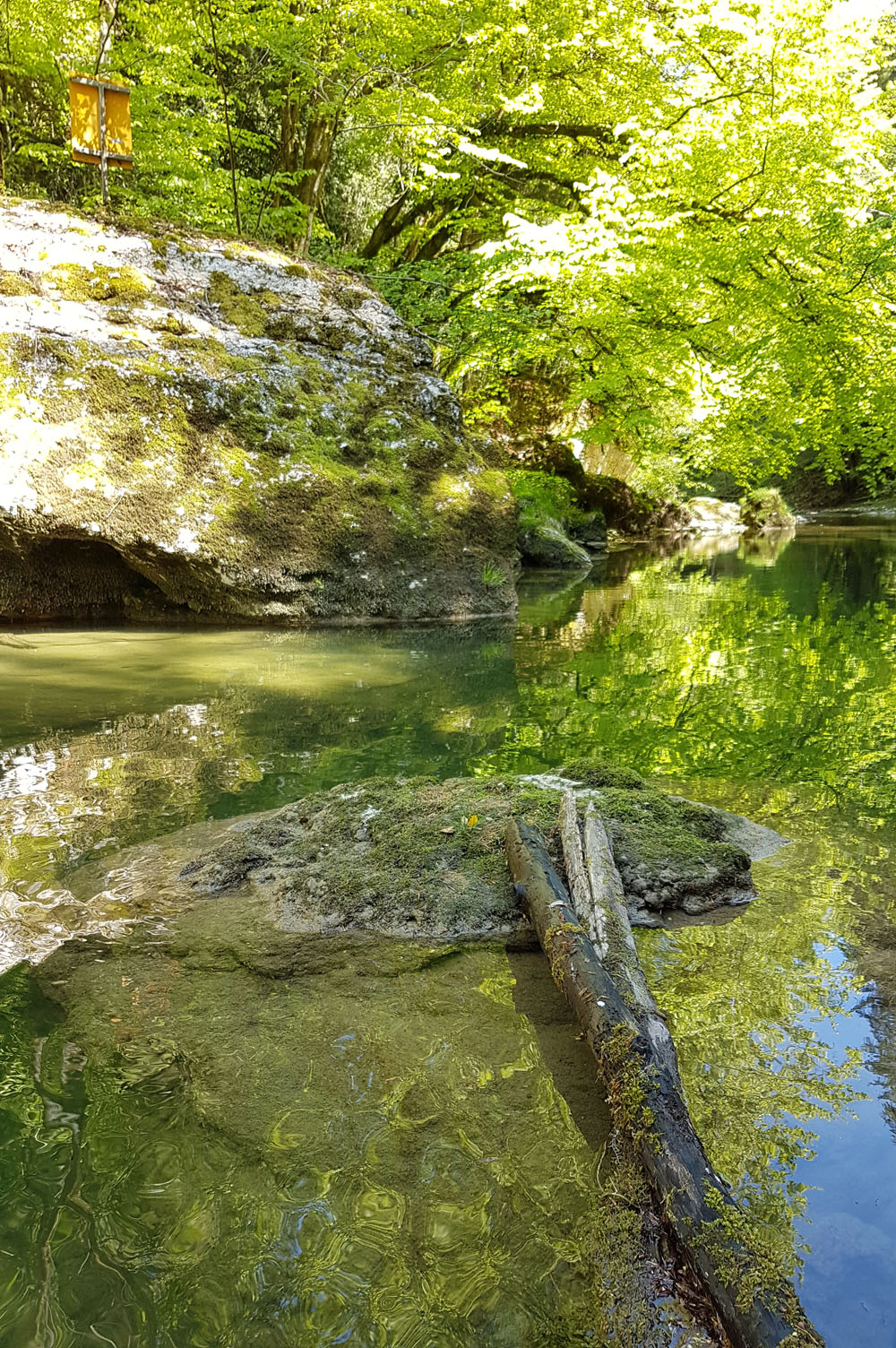 Der Doubs bei Goumois. Links die Schweiz, rechts Frankreich