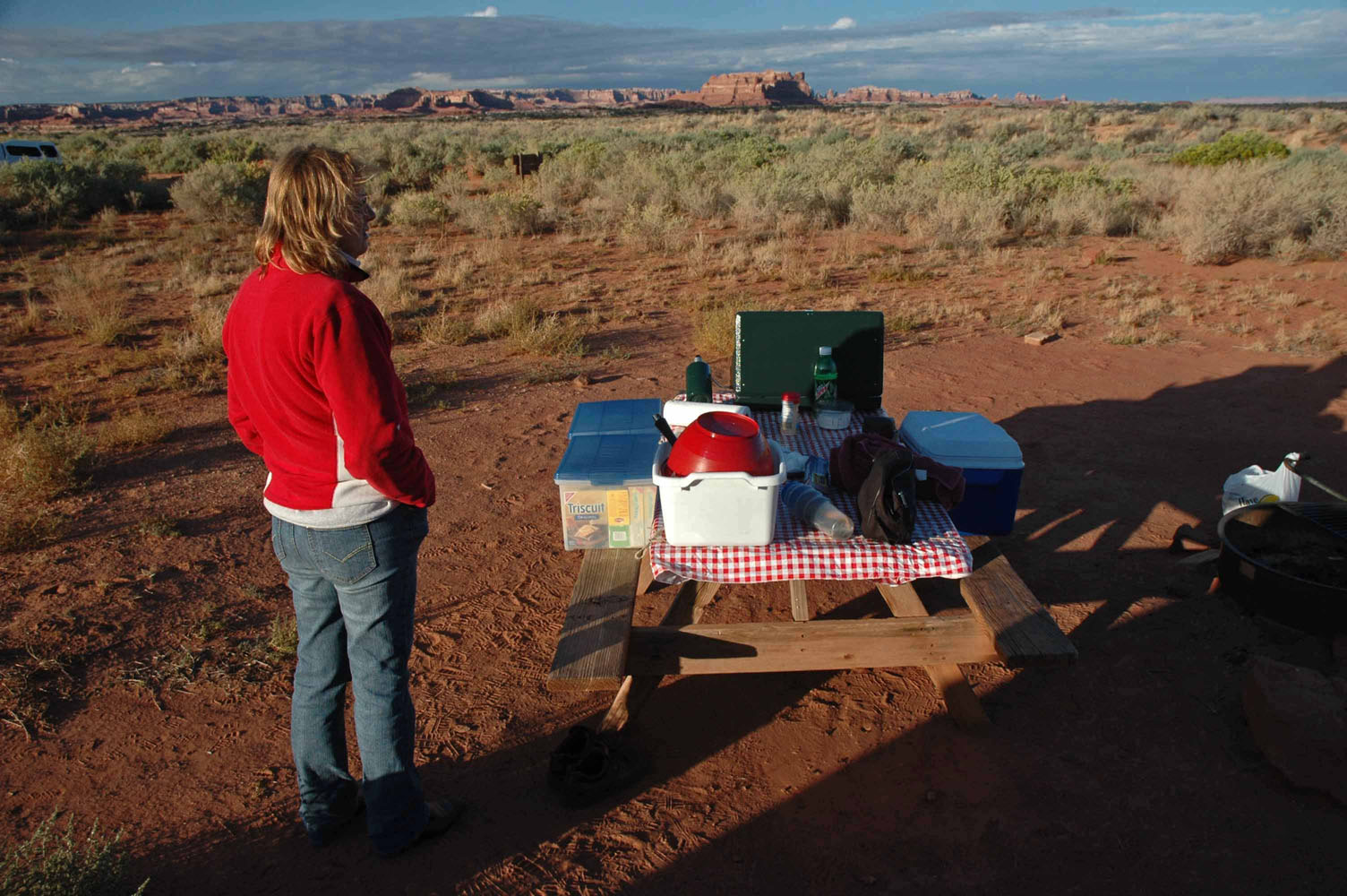 Wieder zurück beim Needles Outpost trinken wir Bier und schwatzen mit Tracey und Gary. Diese