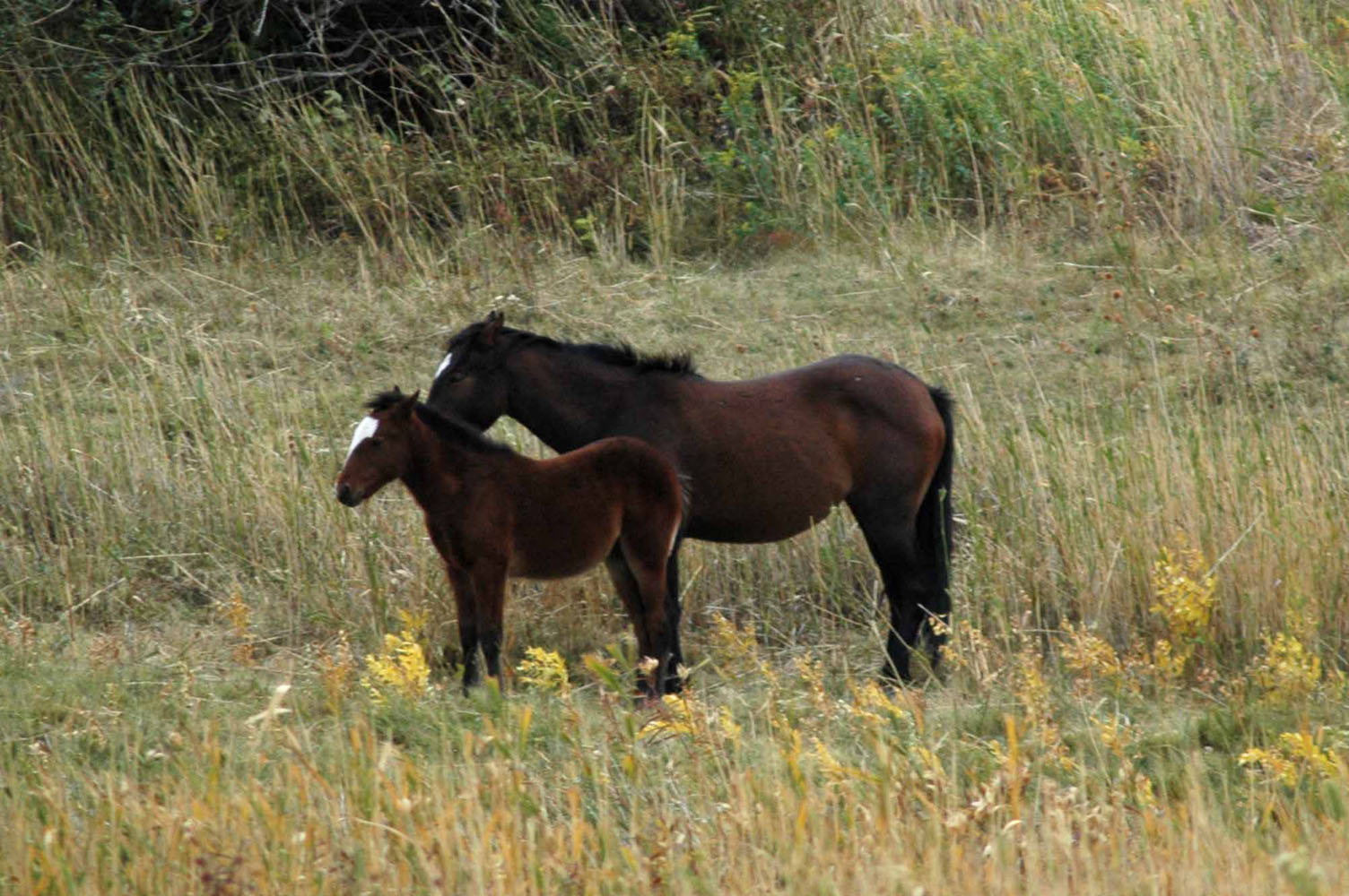 sehen beim Verlassen des Gebietes tatsächlich noch einige wilde Pferde.