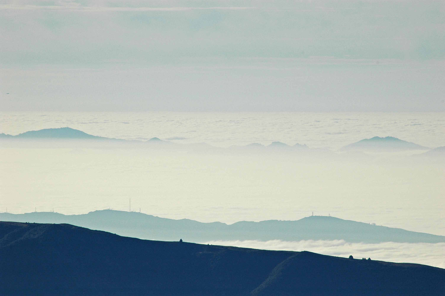 Am Morgen erwachen wir bei klarem Himmel und bewundern das riesige Nebelmeer, das