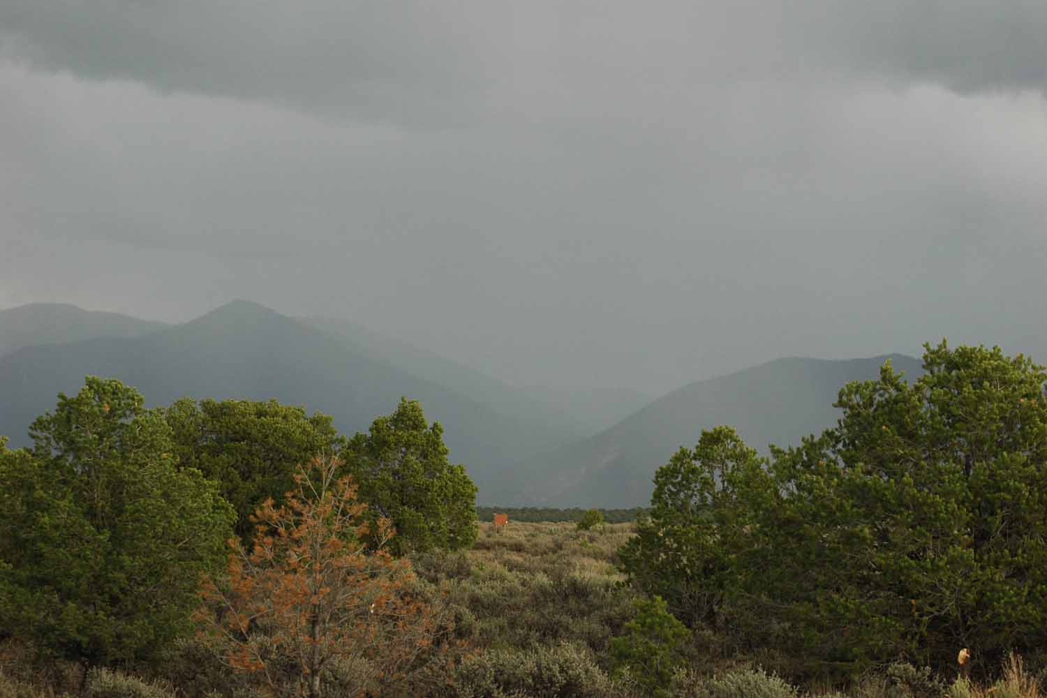 direkt am Rand zur Rio Grande Gorge - und bewunderm im sicheren Auto das bald aufziehende Gewitter.