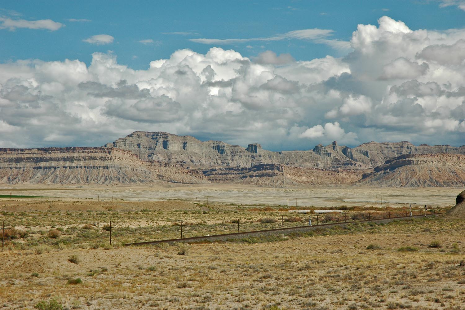 Blick gegen Westen: Rechts sieht man die Book Cliffs, im Hintergrund