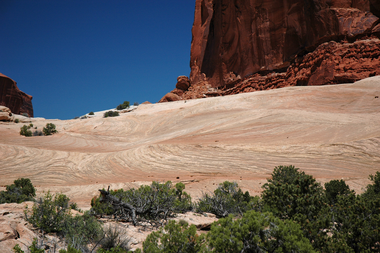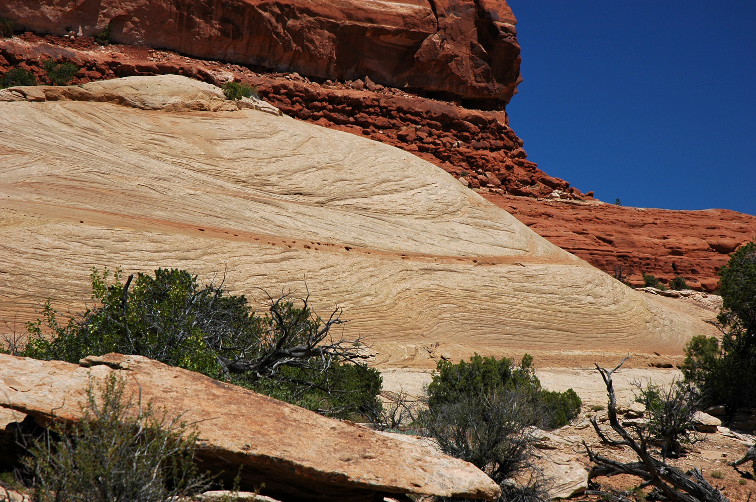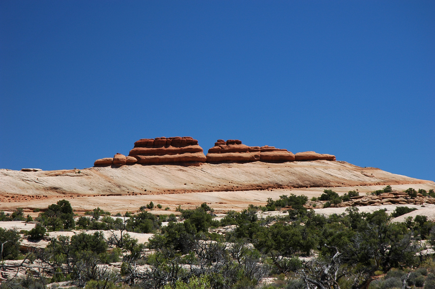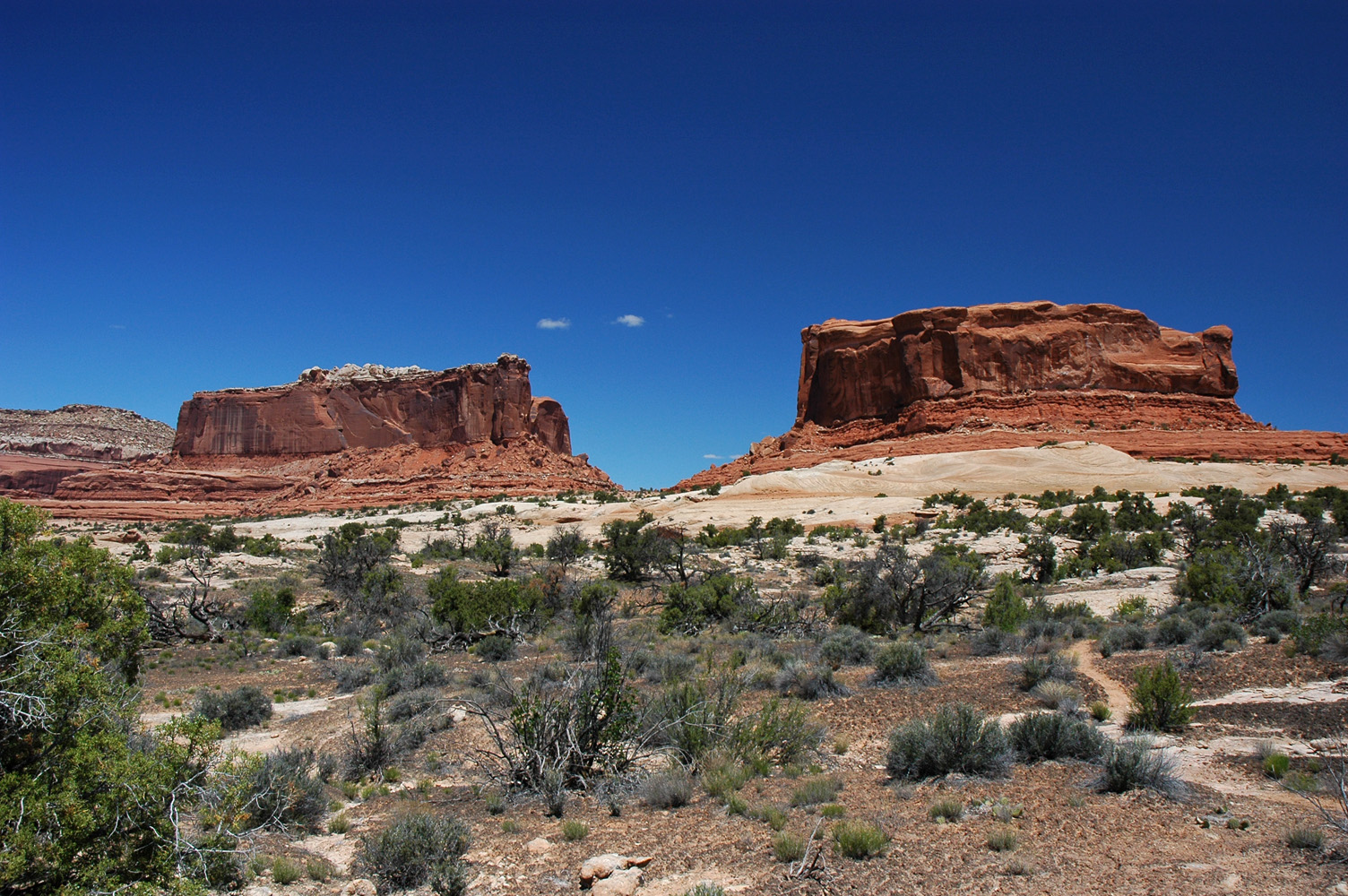 (d.h. ohne Trail) zu den Merrimac und Monitor Buttes. Der Abstieg gestaltet sich unerwartet schwierig;