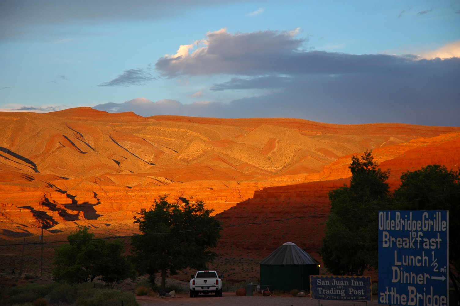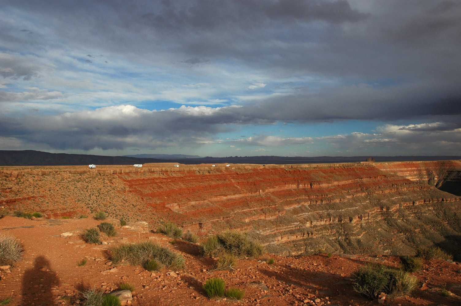 Am Nachmittag Fahrt und Wanderung im stillen "Valley of the Gods". Am Abend beginnt es stark zu winden.