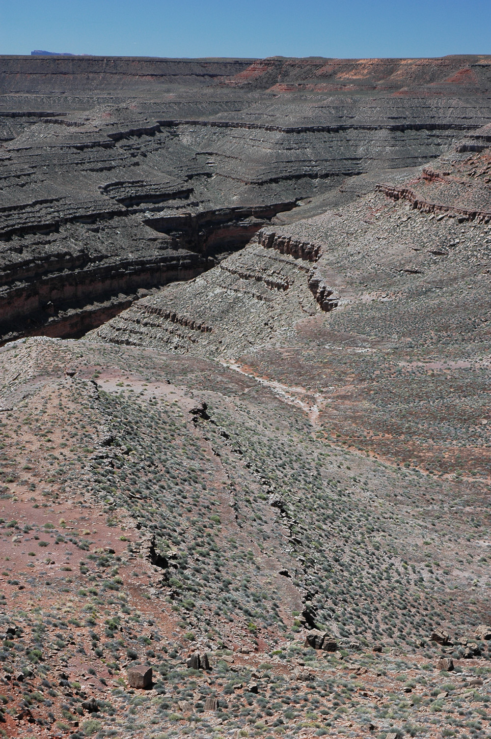 Trail, d.h. den Einstieg zum Pfad, der nach unten zum San Juan River führt. Die Suche ist allerdings vergeblich:
