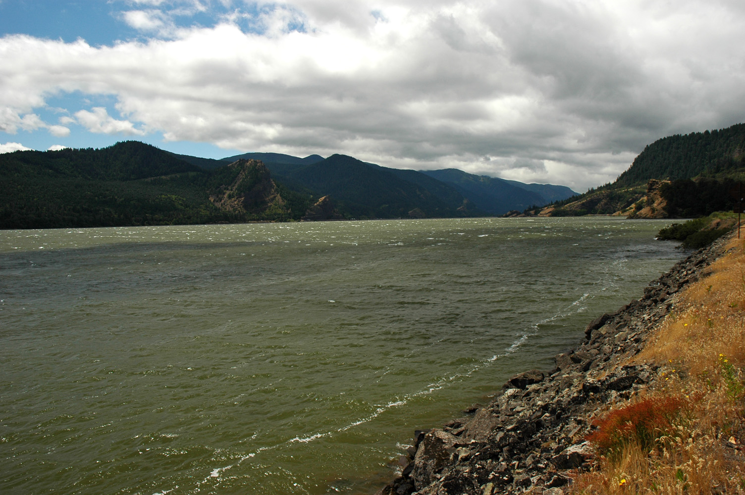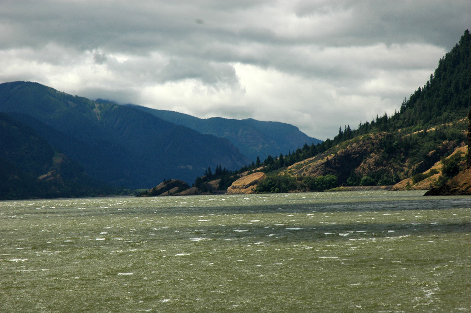 Wieder nach Goldendale und auf der S-126 zur Columbia Gorge. Auf der S-14 westwärts. Der Wind ist höllisch stark,