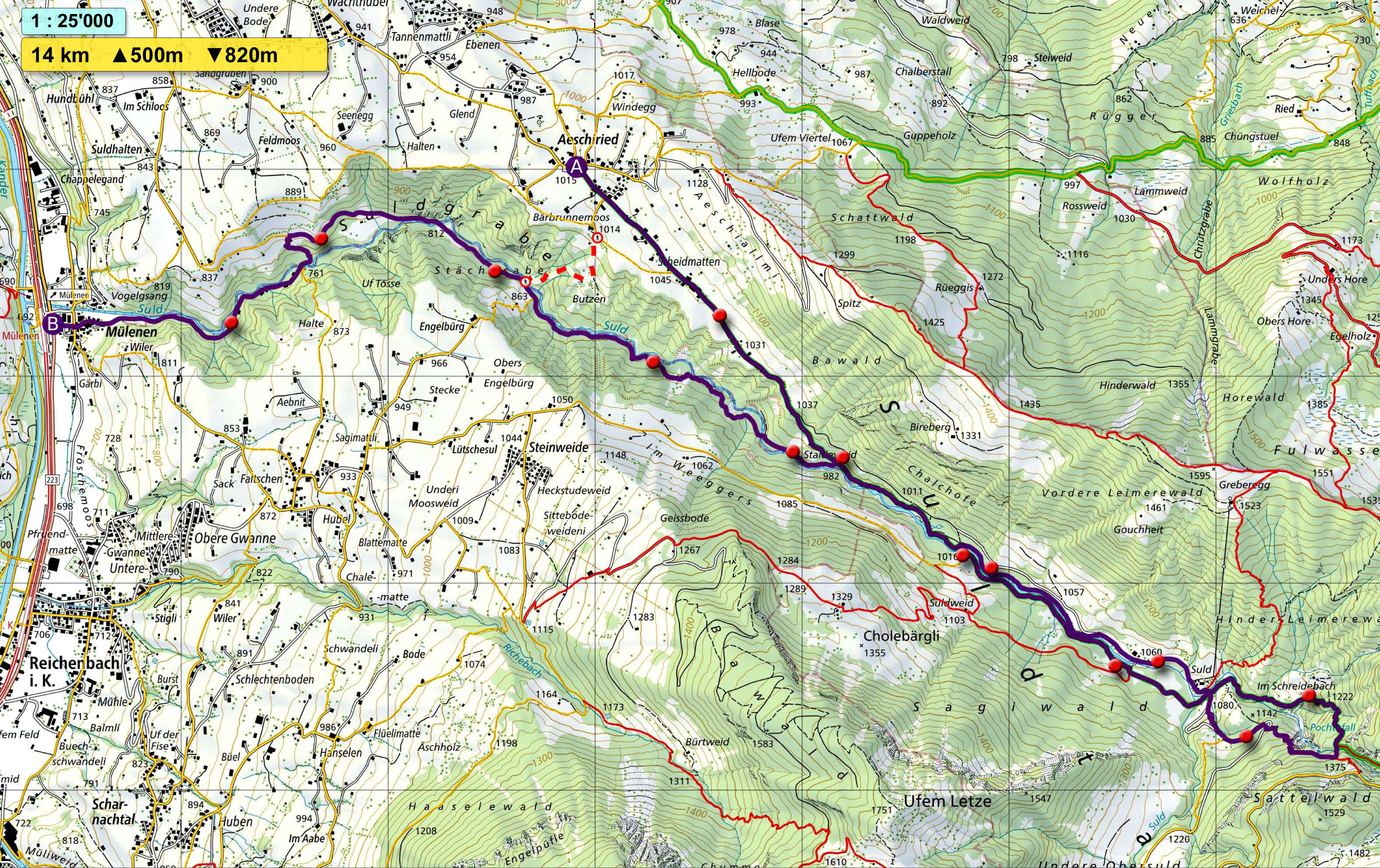 Aeschiried - Suldtal - Pochtenfall - Mülenen