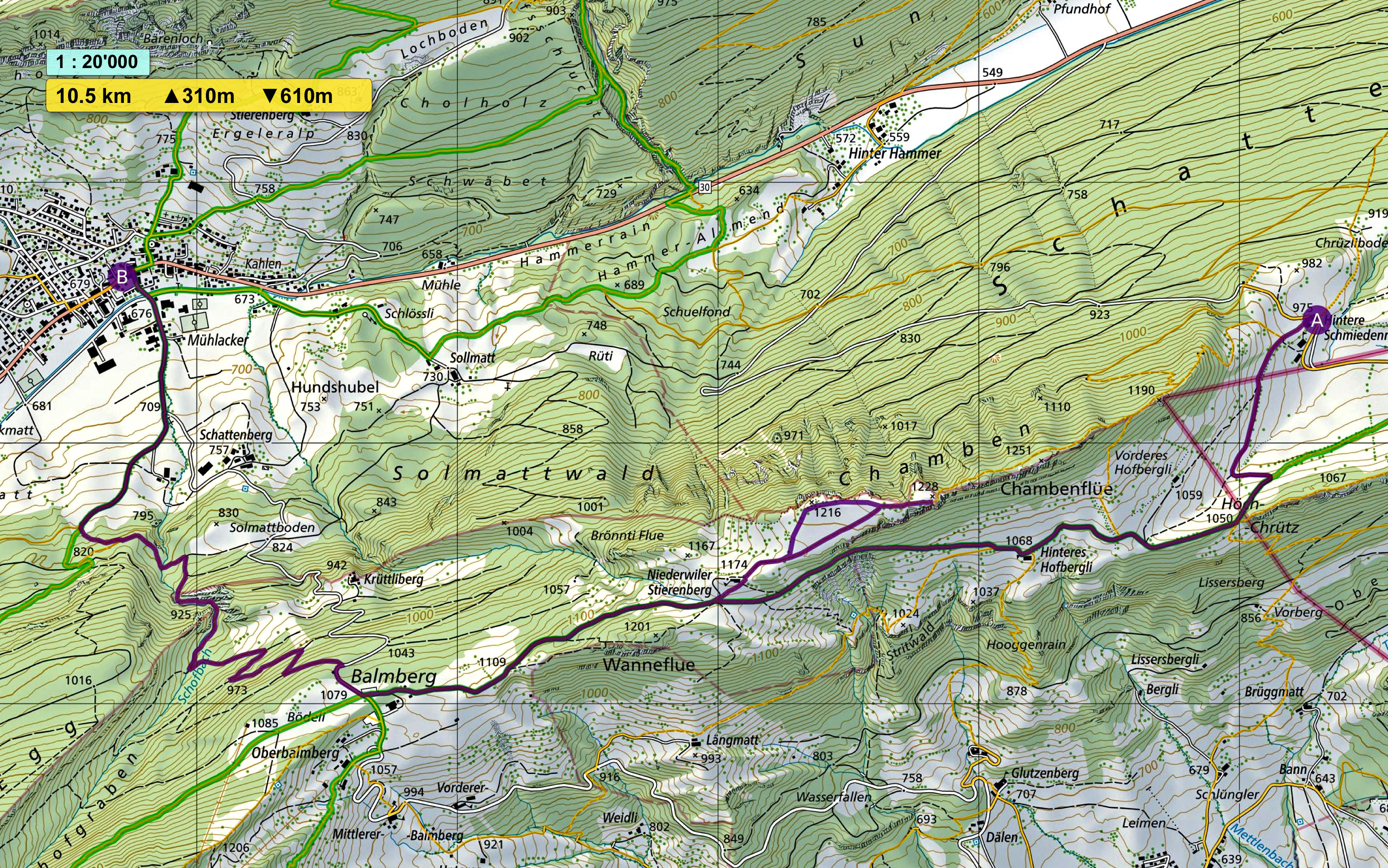 Von Aedermannsdorf fuhren Reni und ich bis zur Hintere Schmiedematt. Dort parkten wir und liefen südöstlich des "Chamben"