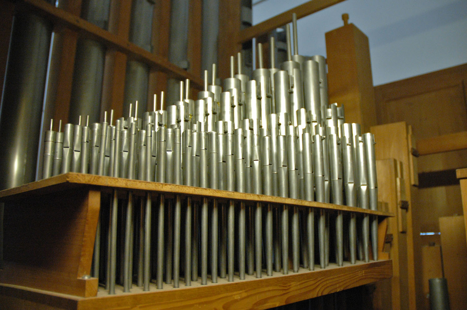 Pedal: Spillflöte 8' aus Metall, dahinter Subbass 16' aus Holz