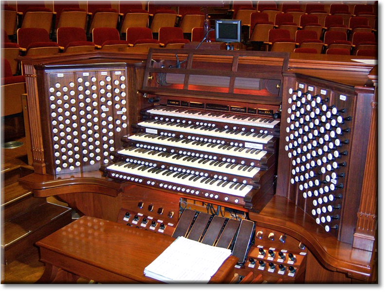 Hübsch der Spieltisch im Tabernacle von Salt Lake City.