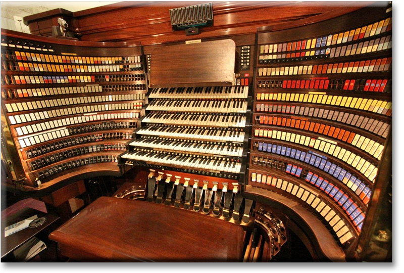 Der Spieltisch erhielt nun eine Unmenge an Knöpfen, Wippen, Schwellern und Fusstritten und wurde so viel komplizierter und unübersichtlicher.