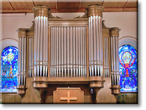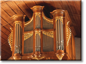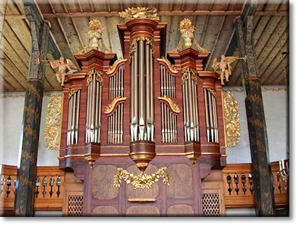 die Orgel und ihr Innenleben von nahem besichtigen.