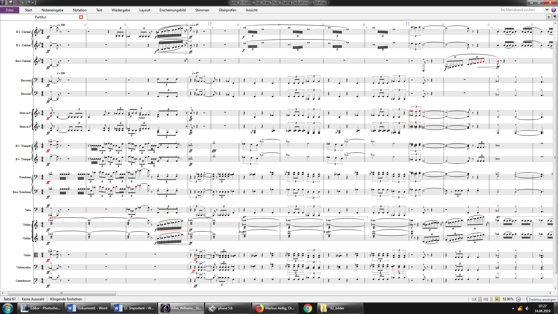 Ich öffnete dann die Star-Wars-Partitur als MusicXML-Datei und speicherte sie auf dem PC ab. Anschliessend öffnete ich sie im SIBELIUS-Notenprogramm