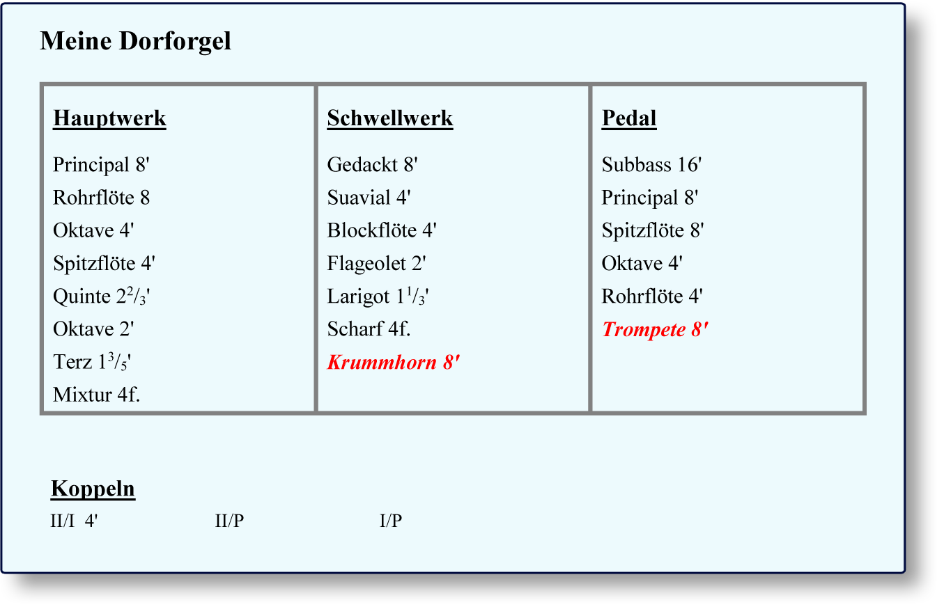 ...und vergleichen Sie sie mit der kleinen, zweimanualigen Dorforgel, auf der ich dasselbe Stück spielen sollte.