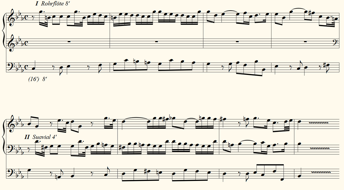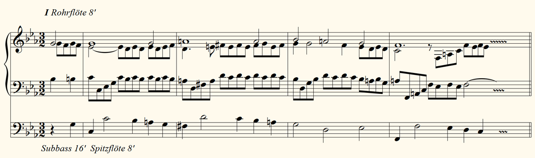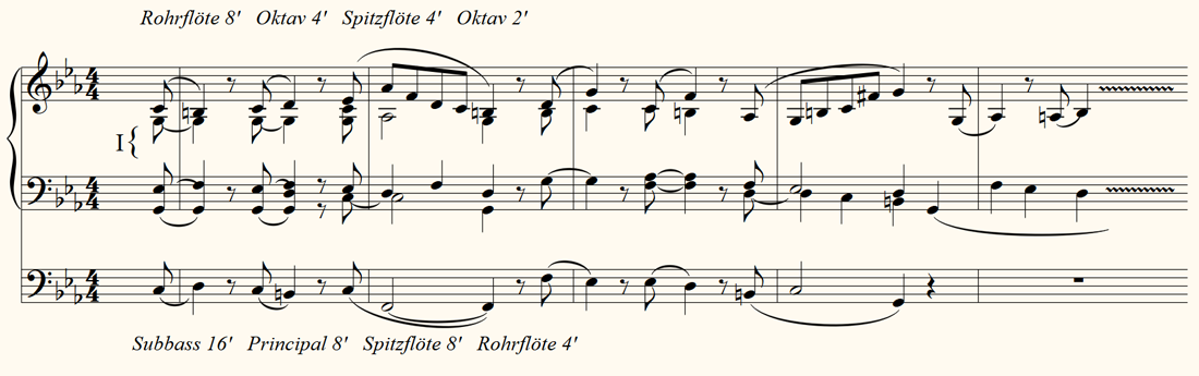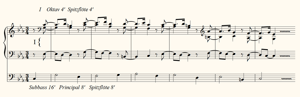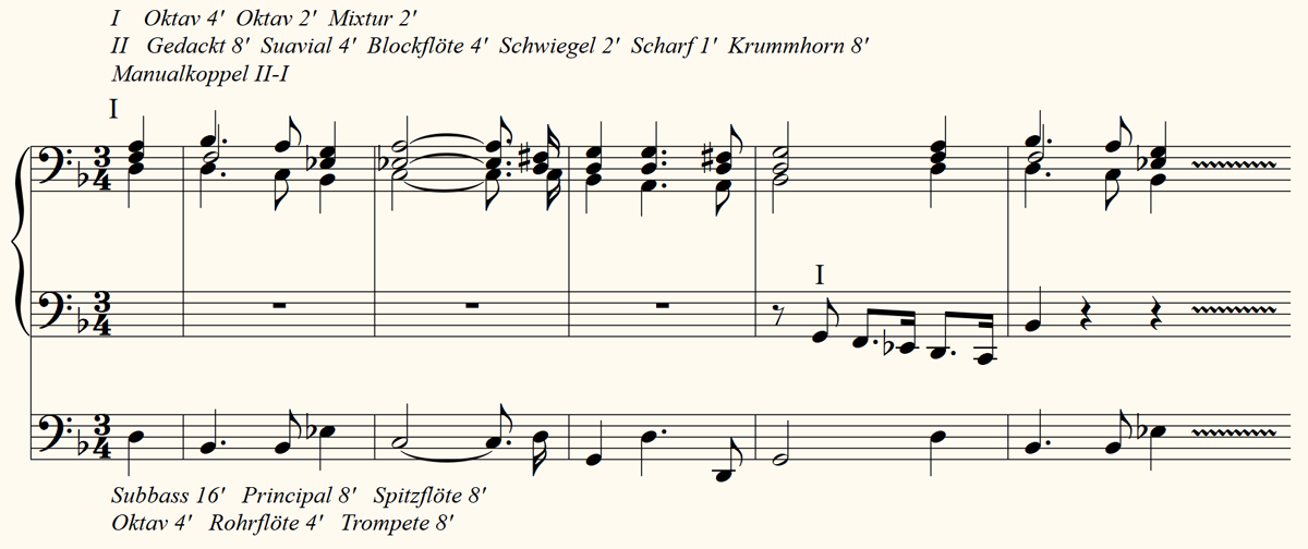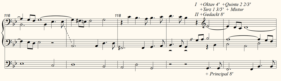 Nach dem einleitenden Pedalsolo spiele ich die nächsten zwei Durchgänge oft auf dem Hauptwerk mit dem Principal 8'.