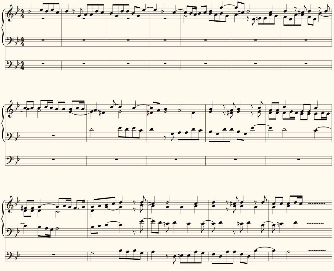 Zwei Beispiele, wie ein dreistimmiges Orgelstück auch gespielt werden könnte: