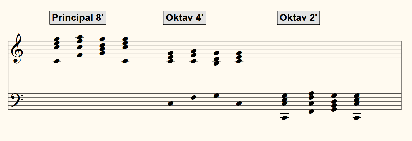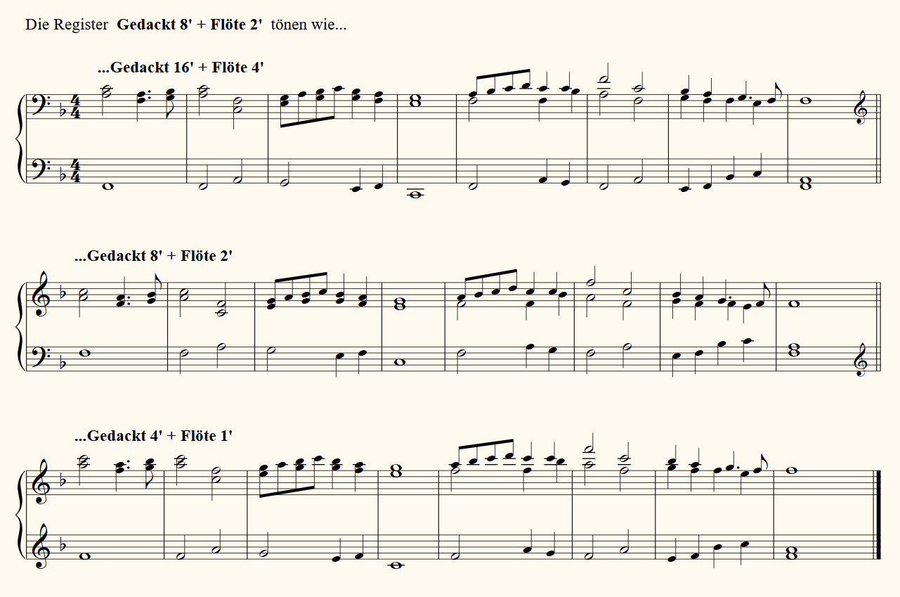 "seine" Orgel, wenn man den Klang dieser 3 Register vergleicht, indem man nach folgendem Muster spielt...