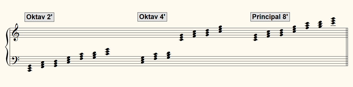 Nehmen wir an, ein Manual hat 8 Register in verschiedenen Fusslagen (8' - 1'). Wenn ich auf diesem Manual eine Oktave