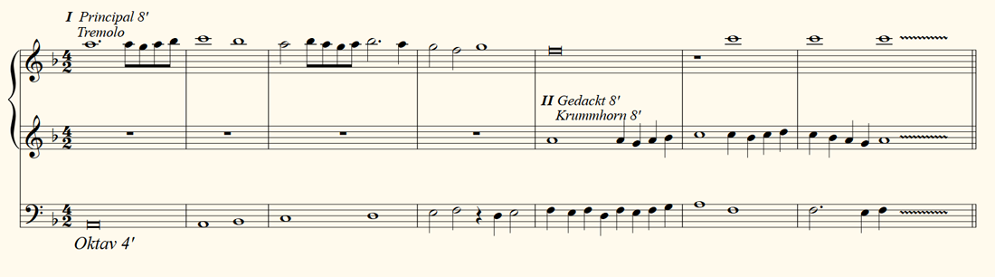 ...normal hoch registriert und eine Oktave höher gespielt, tönt der Choral besonders süss.