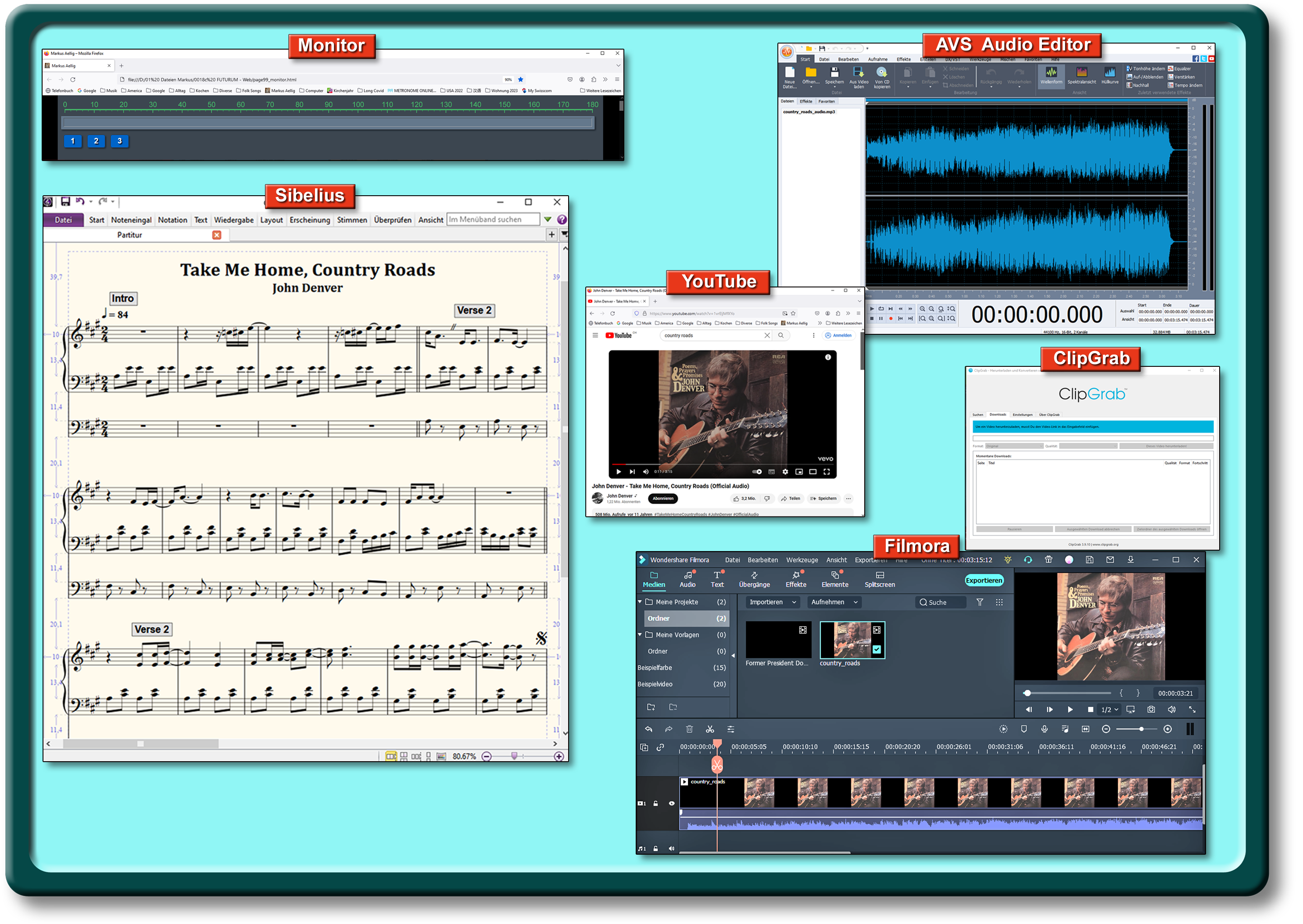 Das folgende Bild zeigt alle Programme, die ich fürs Arrangieren brauchte: