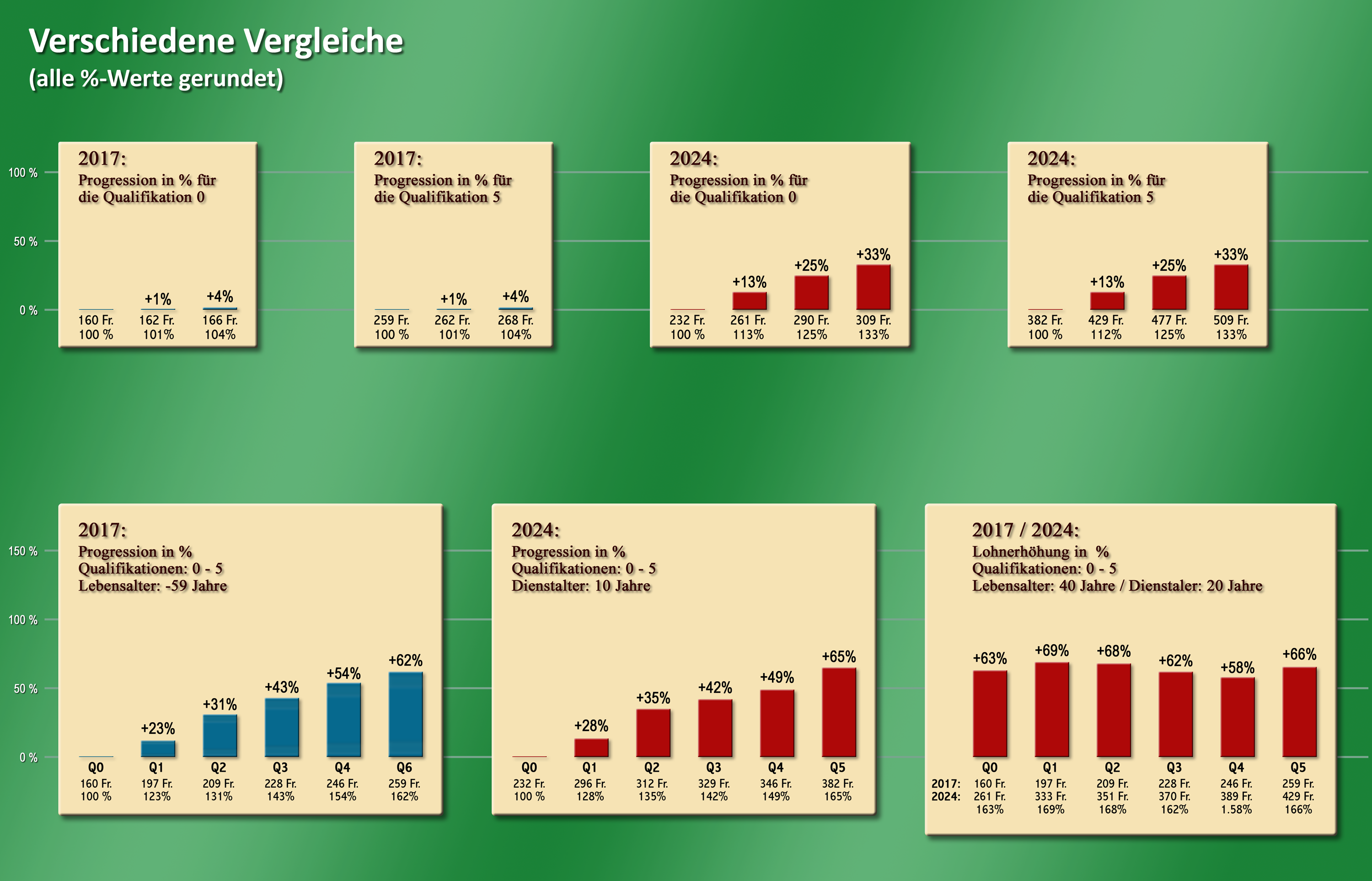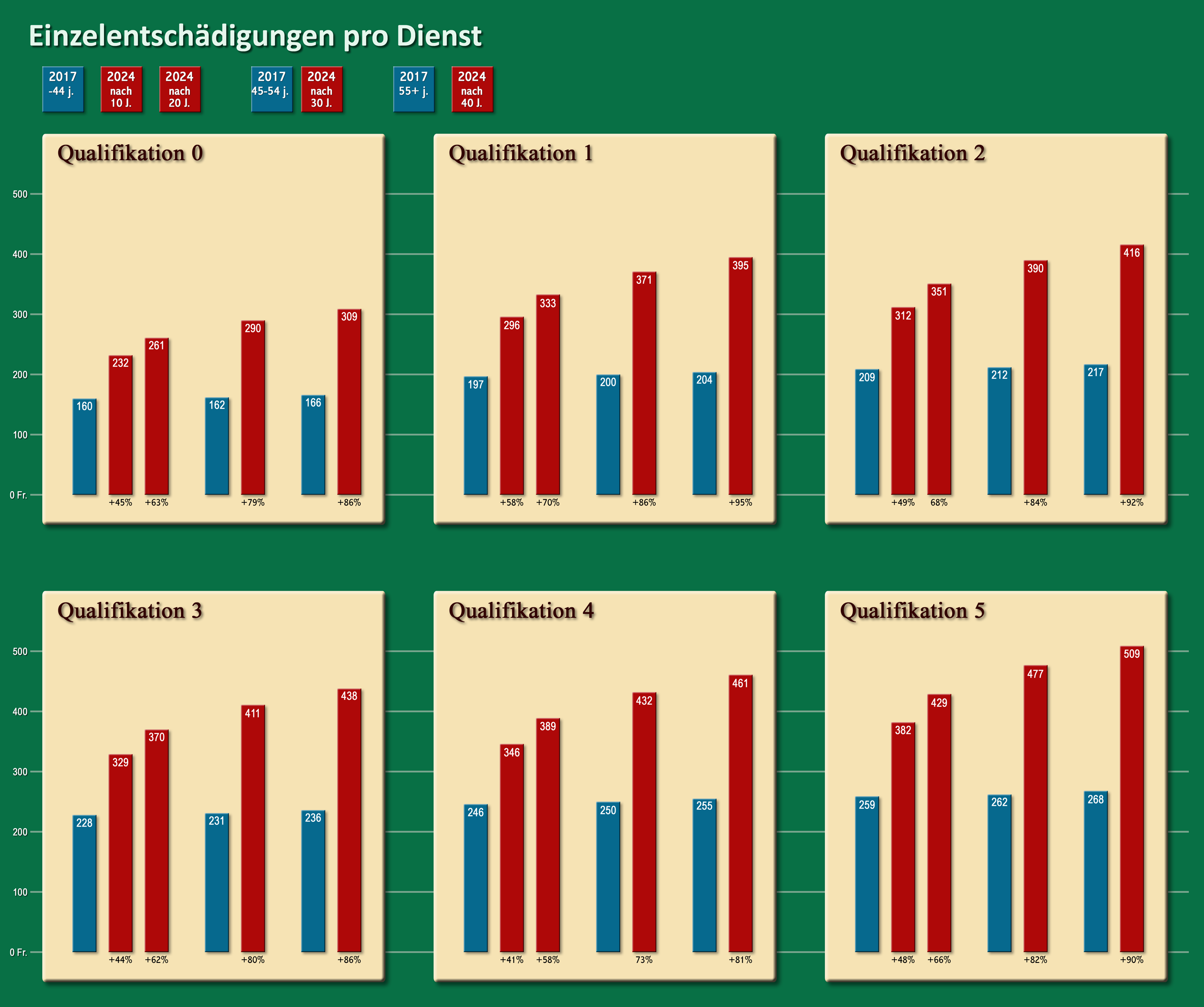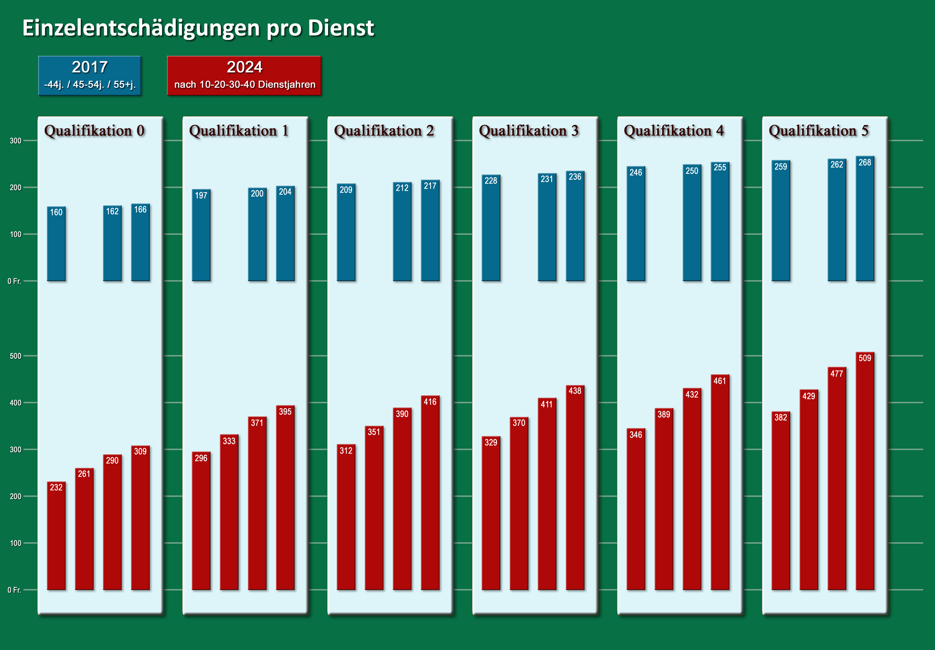 Qualifikation gibt es eine beachtliche Progression, welche vom Dienstalterr abhängig ist. Alle Ansätze sind zum Teil massiv höher als 2017.