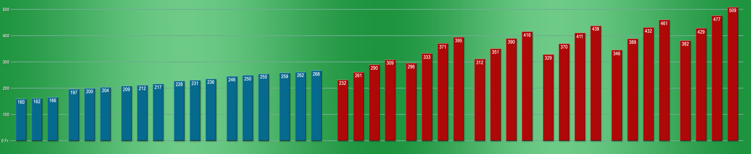 und bewegt sich um Umfang von plus/minus einigen Fränkli.