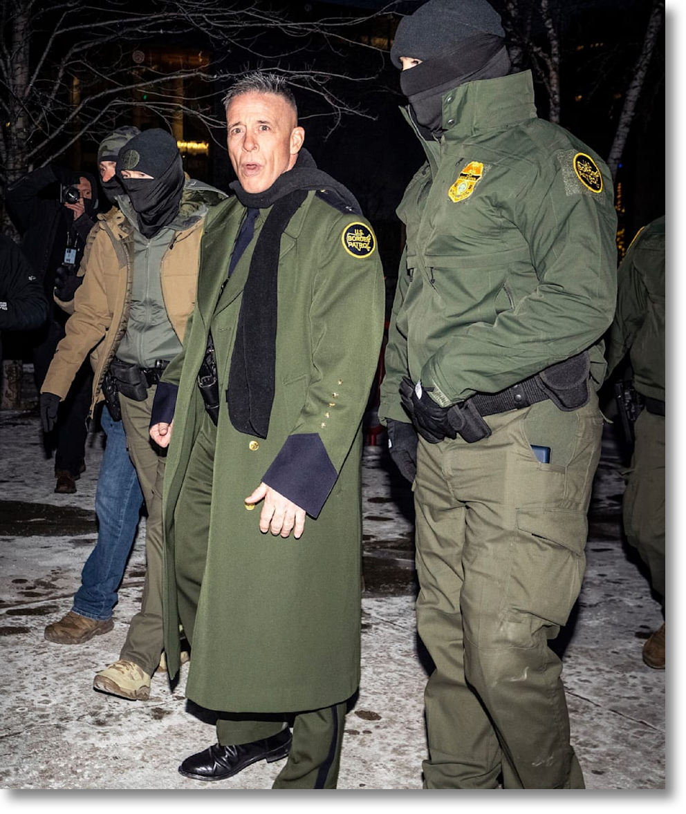 Gregory Bovino tritt martialisch auf. In Minneapolis schreitet er in einem langen, auffälligen Mantel durch die Straßen. Links und rechts von