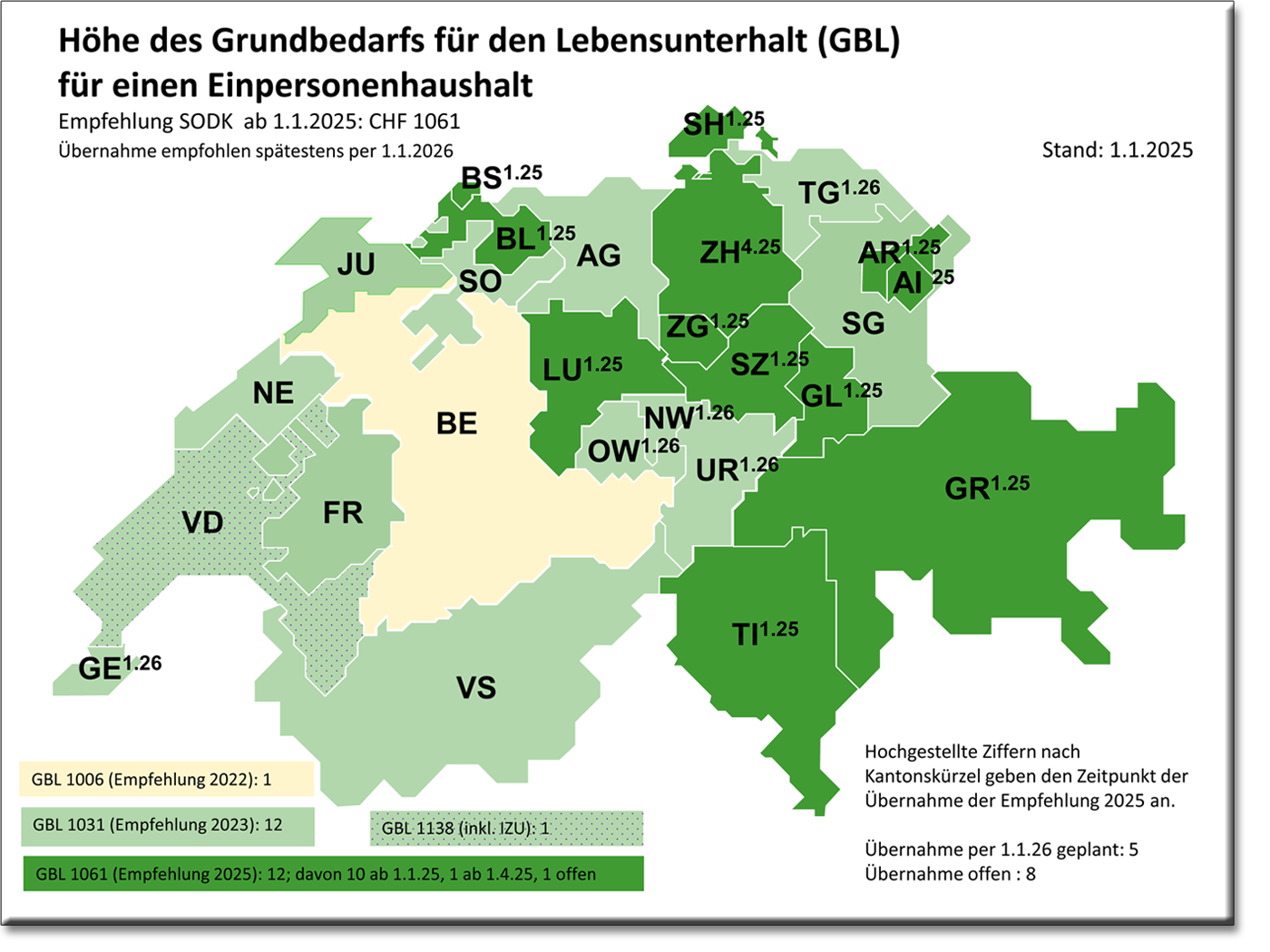 ist ersichtlich, wie hoch der GLB in den jeweiligen Kantonen ist oder sein wird.
